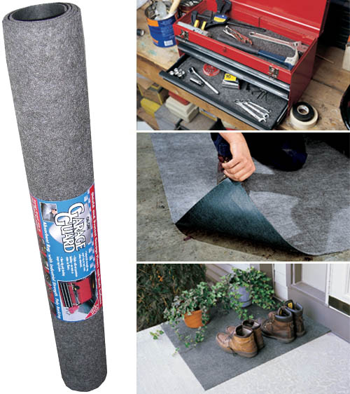 Garage Guard Industrial Rug sheilds and protects shop floors and work surfaces by absorbing fluids without allowing them to penetrate the non-slip poly backing. Easily cuts to any shape for multiple uses. Won’t rip or tear even when saturated.